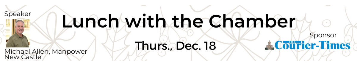 Please join us for the December 18 Lunch with the Chamber with guest speaker Michael Allen, Manpower New Castle. He will be speaking on the topic: When your job postings ghost you: what to consider